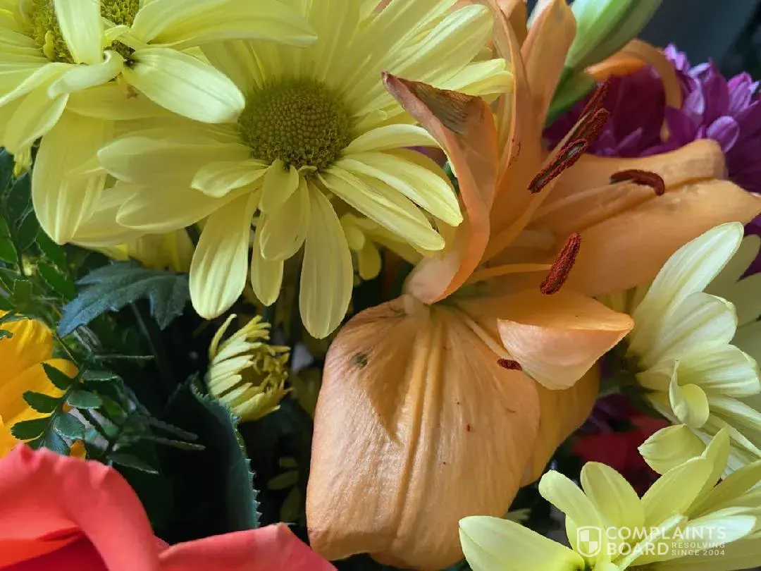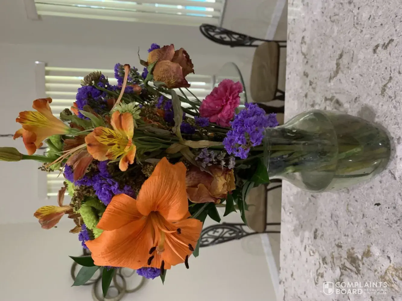 Desired outcome: Please send the purchasers a refund. I am sure they had hoped that the arrangement would remain vibrant and lush. Should you require additional information, please feel free to contact me at [protected]@yahoo.com. Thank you.