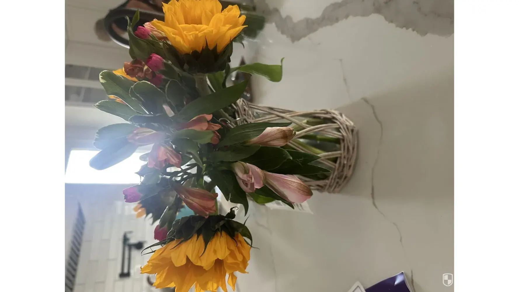 Very disappointed. Sunset Bouquet w/wicker vase. Delivered by Fedex. Tracking #[protected]