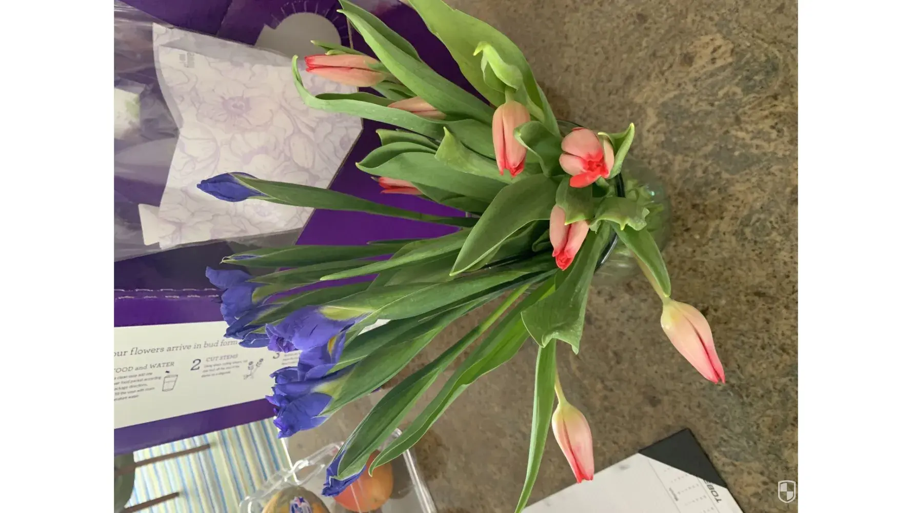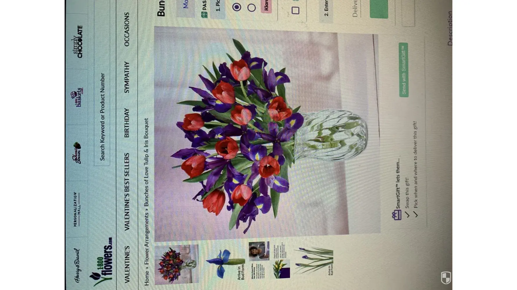 After posting on your Facebook page too, I have received several responses, with other customers own pictures reflecting the same thing for your Bunches of Love Tulip & Iris Bouquet arrangement. So, this is not an isolated incident, it's a problem over all with your advertisement and the florists that you choose to use. I demand Complete refund or send me a Purchase Order to send your product back.