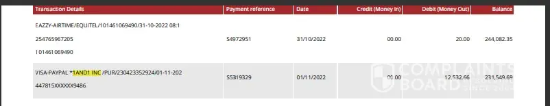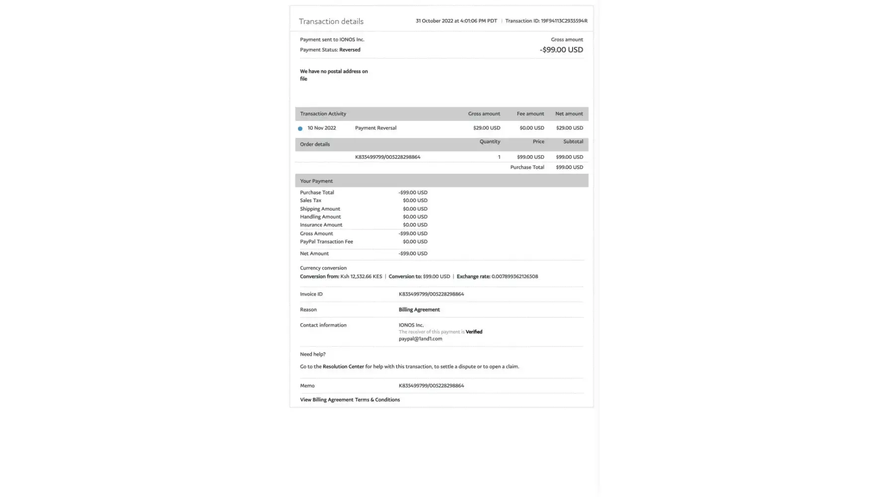 I didn't understand why 1AND1 INC was referring to when they mentioned a dispute in collecting the balances when all the amount indicated on the invoice was charged and I didn't file any petition with my bank for a refund, apart from the $29 refund through PayPal.