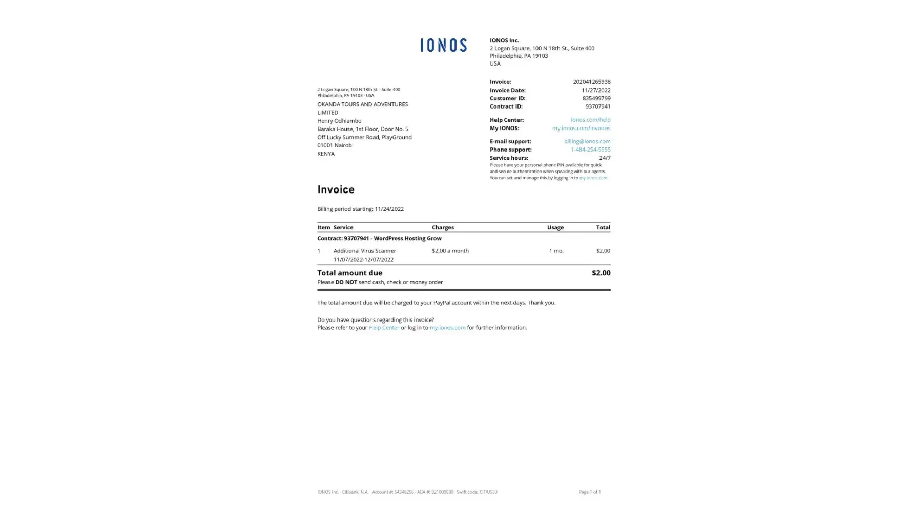 I agreed to a 1.20 monthly fee for my charity, ionos did not tell me that they started taking 30 pound per month for the last two years.