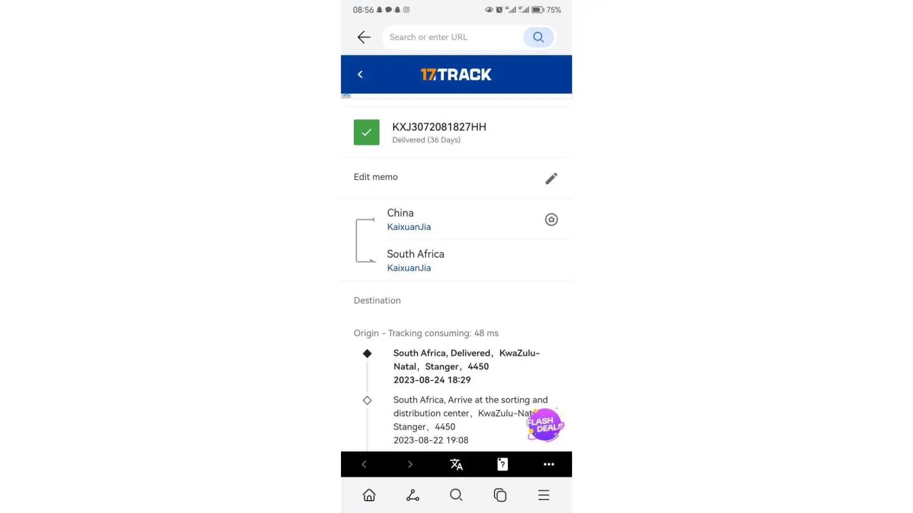 17TRACK state that they have delivered parcel. Tracking no AS035375785CN on 12/8/2023