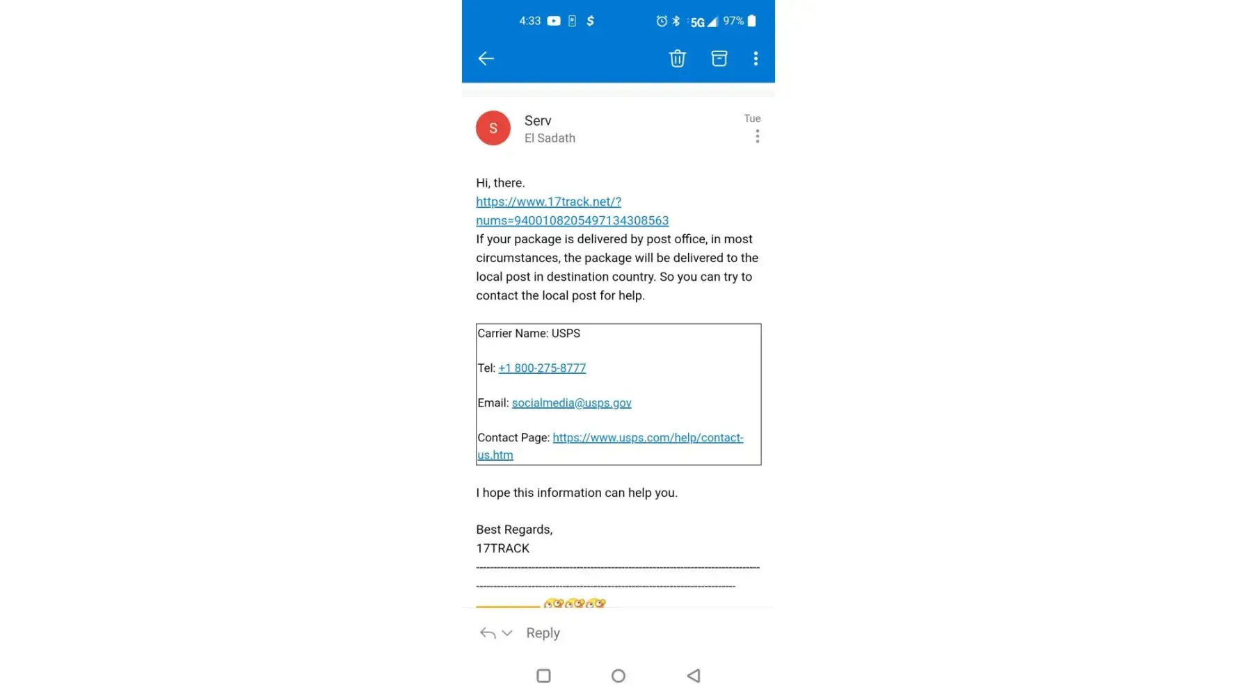I had make a report to 17track.net in this morning. And a report to the sender too.