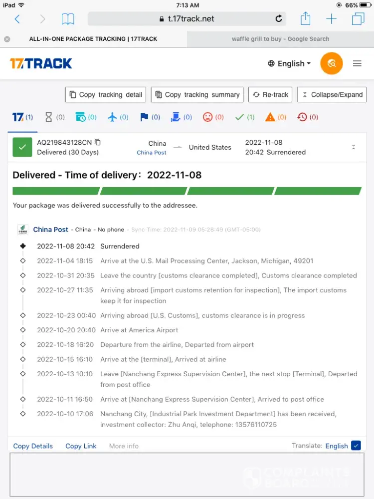 delivery company:https://www.17track.net/en