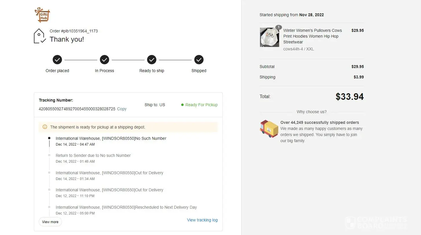 This company seems like a scam. They said my shipment was discarded by usps. That just doesn’t happen. If the item was truly shipped, it needs to be delivered.