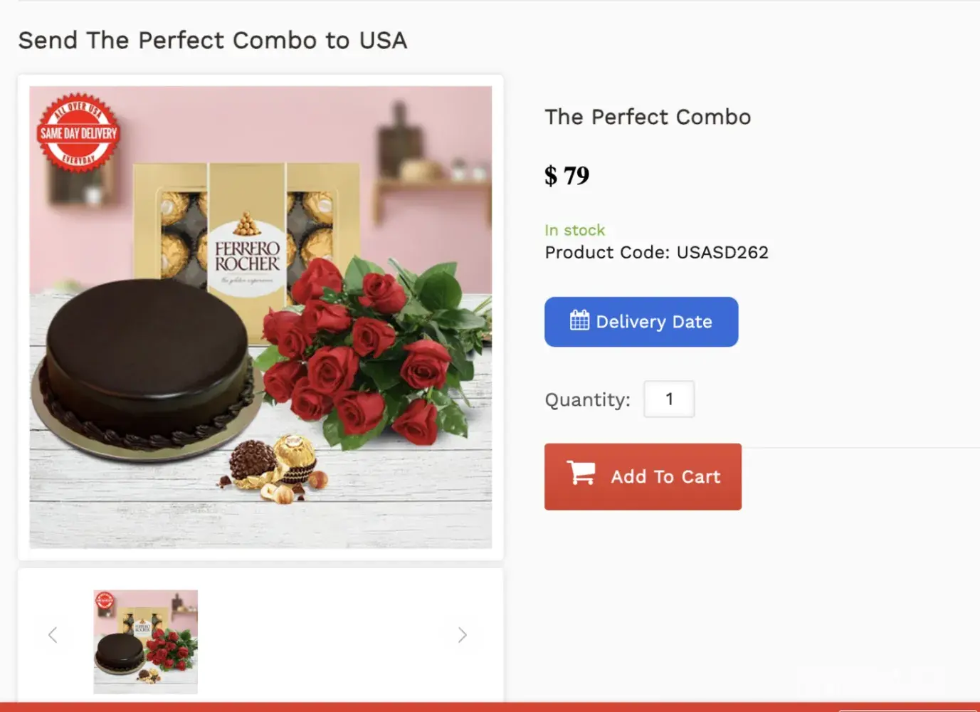 They sent a cheap, $5 cake from ALDI which is 10 min away from my place, and was completely different from the one in the photos. No flowers, no chocolates—just the cake, and even that was subpar. It was clear no effort was made to match what was promised.