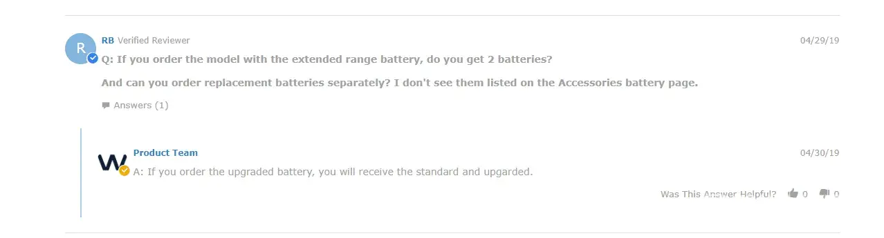 Q: If you order the model with the extended range battery, do you get 2 batteries?