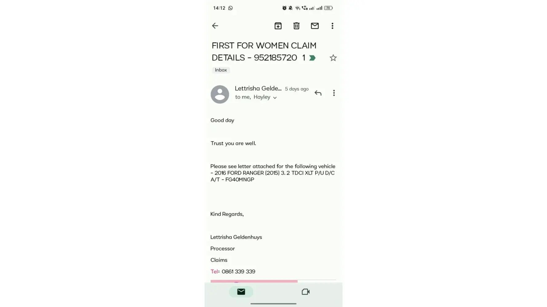 Hi on friday i phoned for a letter on a letterhead with vehicle details on stating that you didnt pay out our vehicle its a ford ranger bakki i ohoned monday i phoned teusday i phined this morning stil waiting for letter