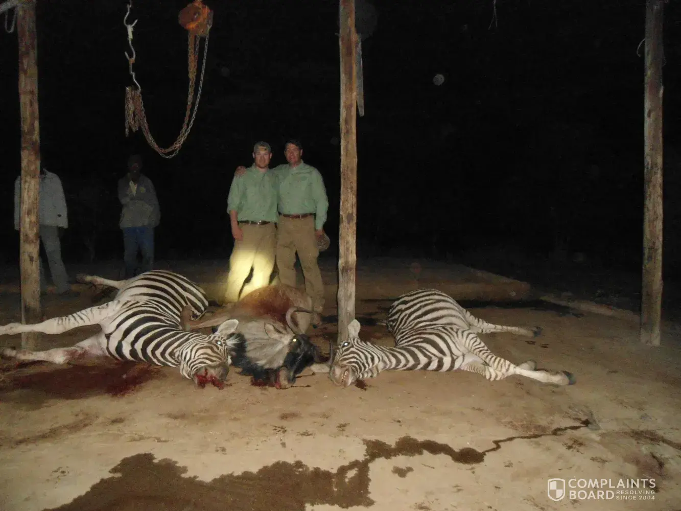 These zebras were a couple just minding their business grazing, and along come Parker Favrot and James Favrot with their high powered rifles in trucks aided by guides. Parker shoots and kills the male, the female attempts to flee after seeing her mate being heartlessly gunned down.in the confusion she waits across the road hoping to see her male mate emerge so they can once again roam and graze together (Little did she know her mate was already laying in the dirt gasping for air as his mouth was blown off by Parker Favrot). However, a zebra reunion was not what James Favrot and his son Parker Favrot had planned. That is when James Favrot spots the female, then pulls the trigger and brutally ends the life of the female zebra. Thus ending the life and journey here on earth of 2 great creatures, and for what? (Apparently that makes them big men, in reality it shows weakness of character and pure shameful cowardice)