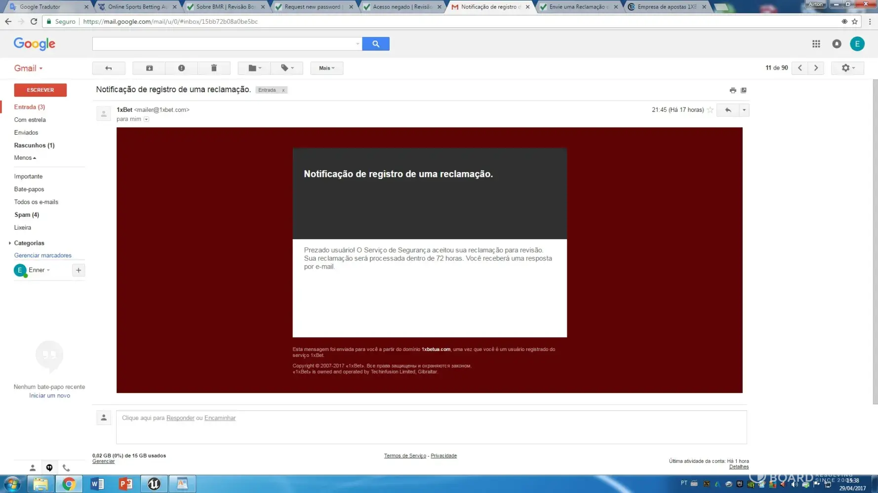 I will file the compliant against 1xBet