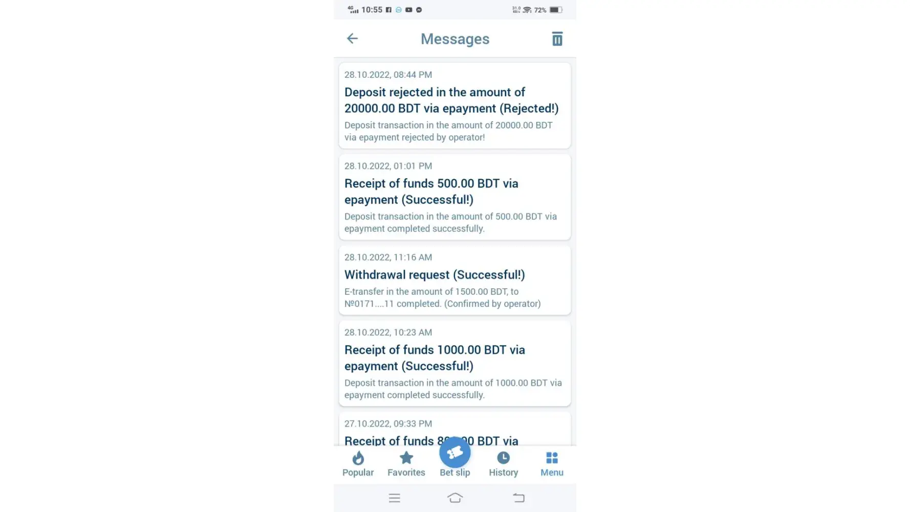 I was deposit 500 BDT in my 1xbet account, bt i didn’t received it, kindly help to refund my money.