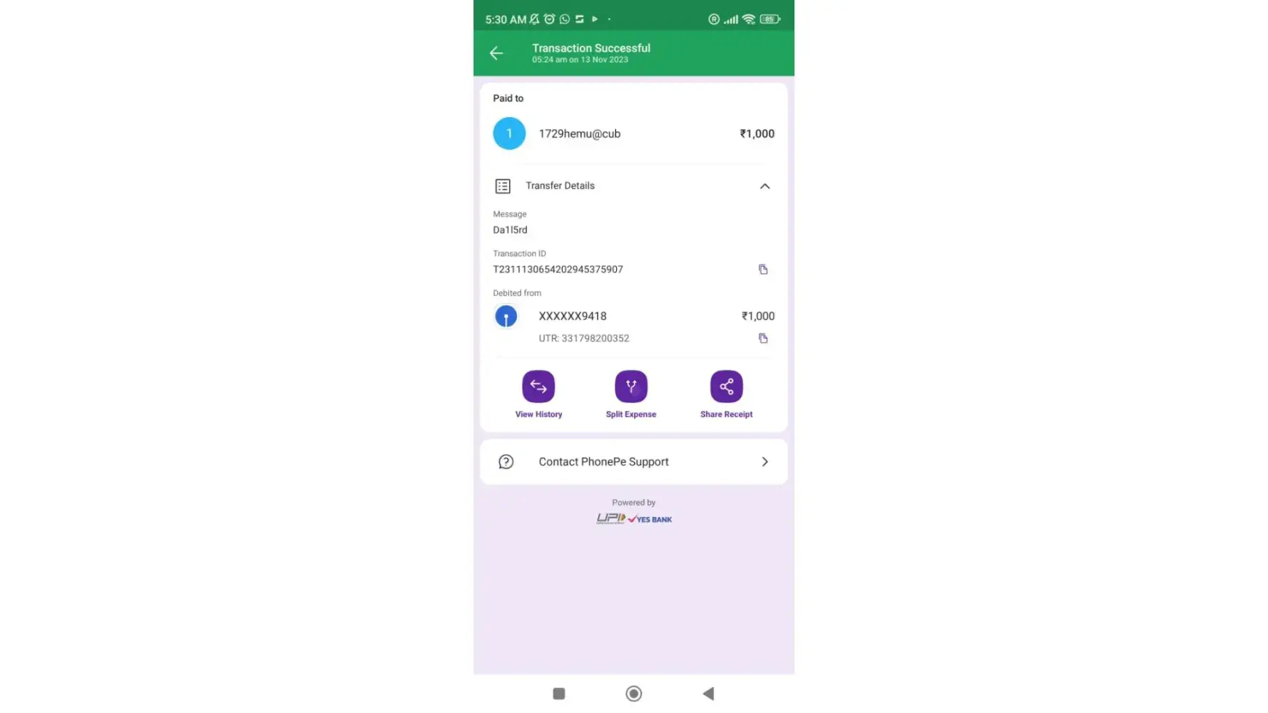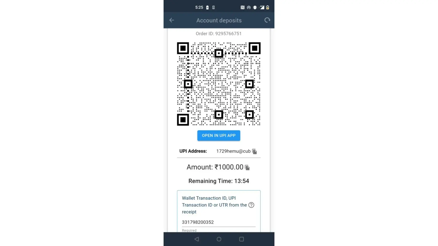 I deposited 1000 rupees but not deposited in my account bearing id [protected] and the amount had been deducted in my bank account with a transaction ID [protected].
