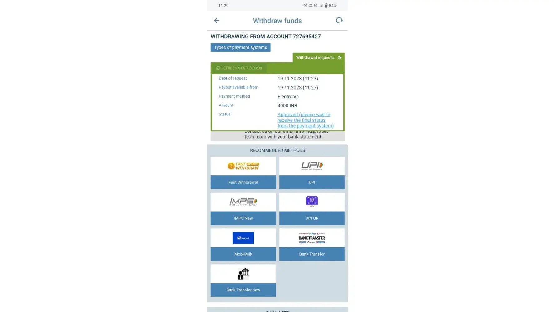 1xBet - Deposited inr 2300 not credited to 1xbet account 11
