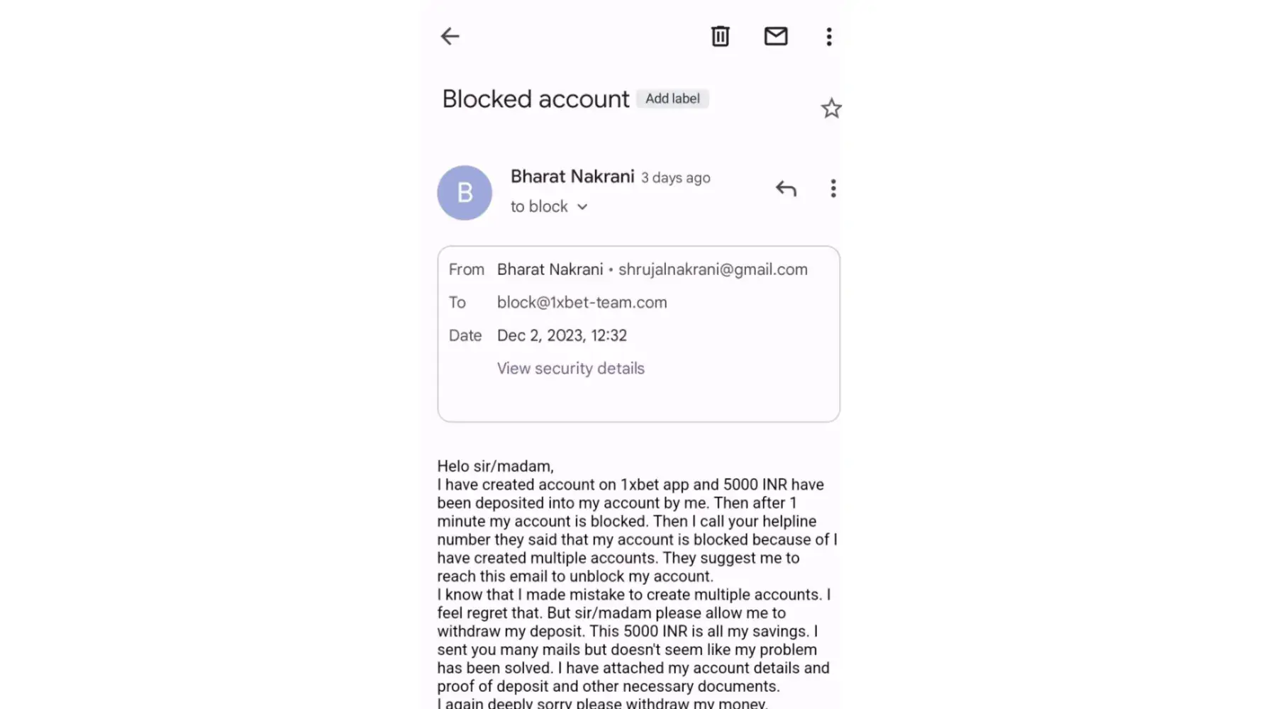 Thank you for reaching out to us. Please contact us at public.relations@1xpartner.com so that we could help you with your situation further the fastest way