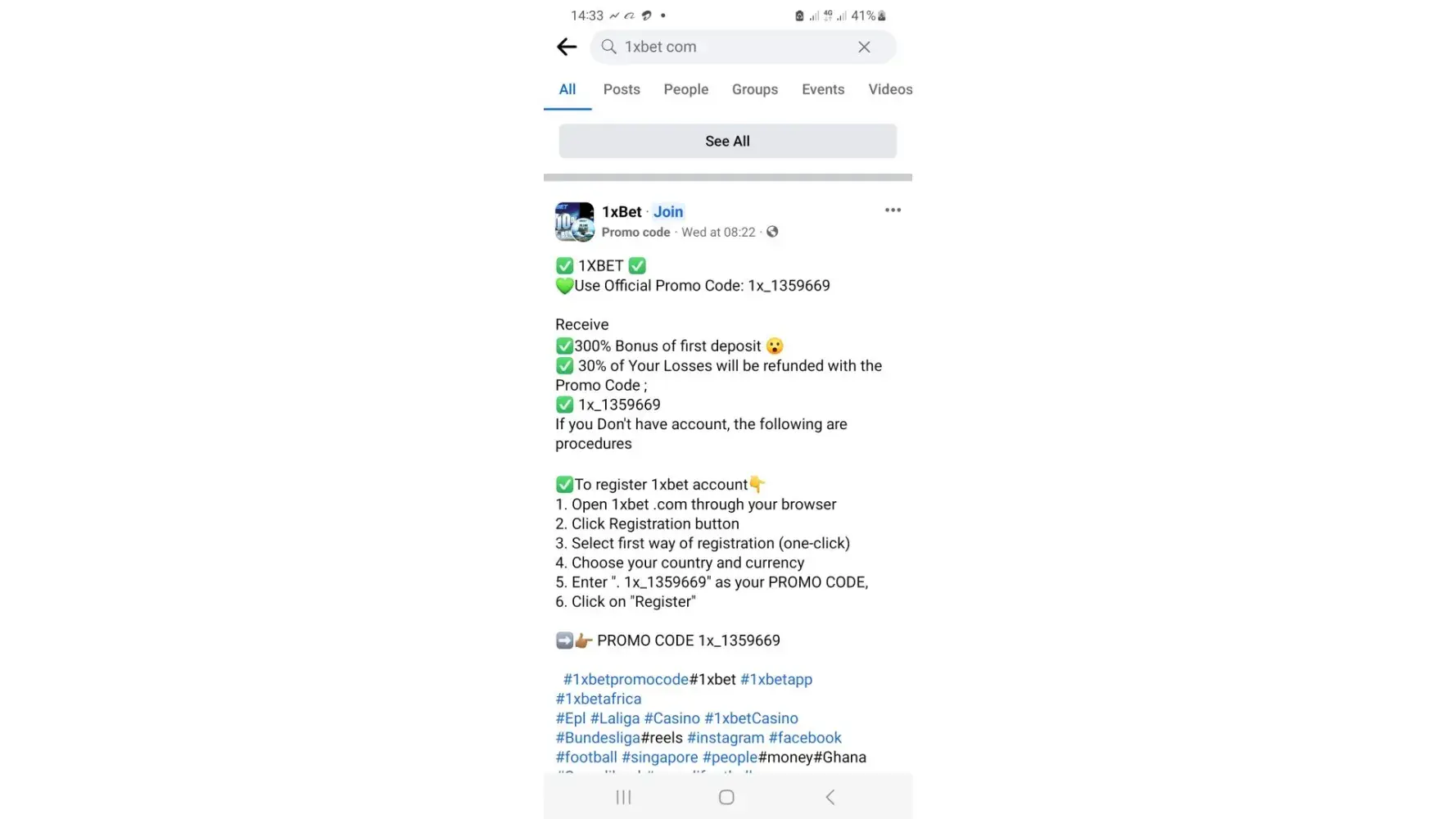 4. 1xBet social media