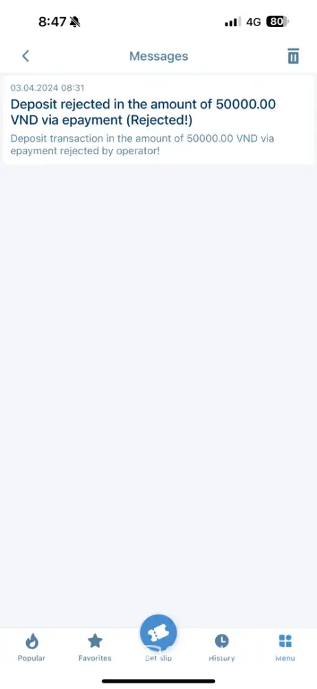 I deposited 50k VND into my account but it said that payment was rejected while the money has already been transferred from my bank account. I would like to get a refund or a transfer into my 1xbet account. Thank you for your consideration
