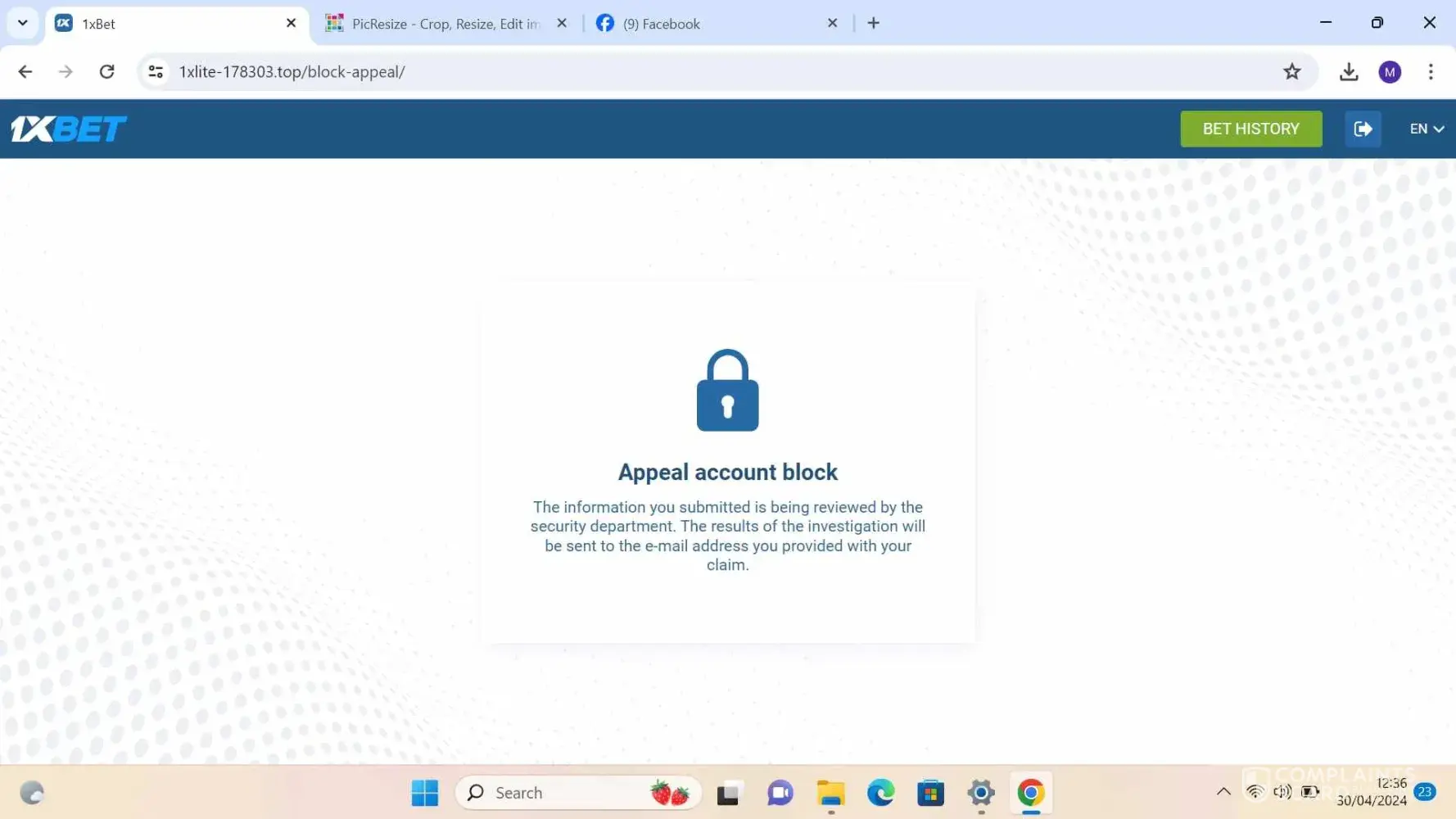 My account with 879.42 euros has been blocked since 04/25, I have returned an appeal form that asked me to wait 72 hours, after 72 hours, 1xbet sent me a new message asking me to wait another 72 hours.