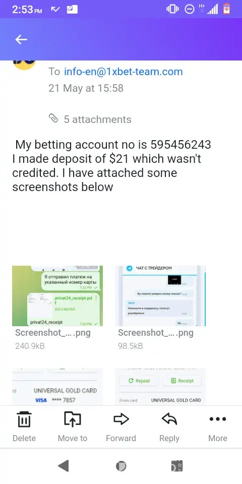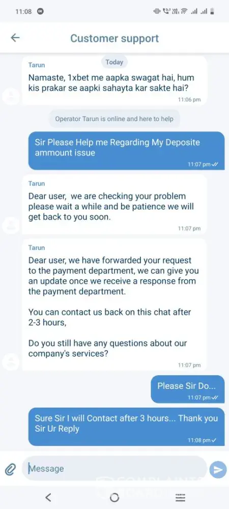 1xBet - Deposited inr 2300 not credited to 1xbet account 11