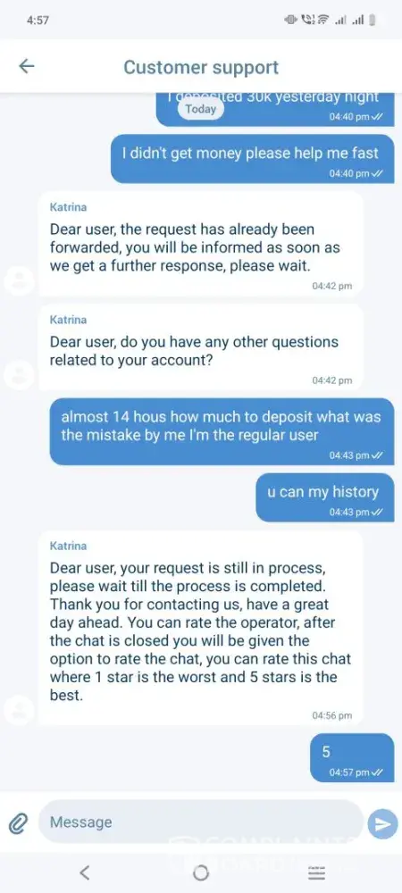 I have deposited 2500 on 4/4/2024 maybe around 7 pm. And then again 1000 on same day around 10 pm. Now it has been 3 days and my money is not reflecting in my Account, on top of that there are some notification came that the deposits are rejected by operator. I have sent almost 8 to 10 mails to the ixbet team. They never reply. What to do now.