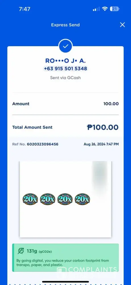 I deposited 100 pesos into my account, and it's been taking too long, and I still haven't received it.