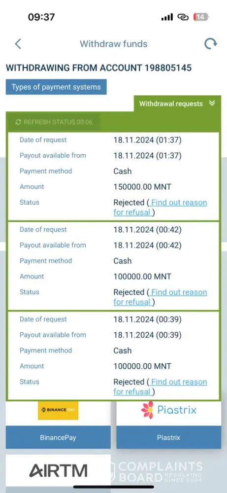 Specify please did your issue resolved? Did you withdrawn your funds?