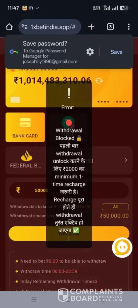 1xBet - Deposited inr 2300 not credited to 1xbet account 11