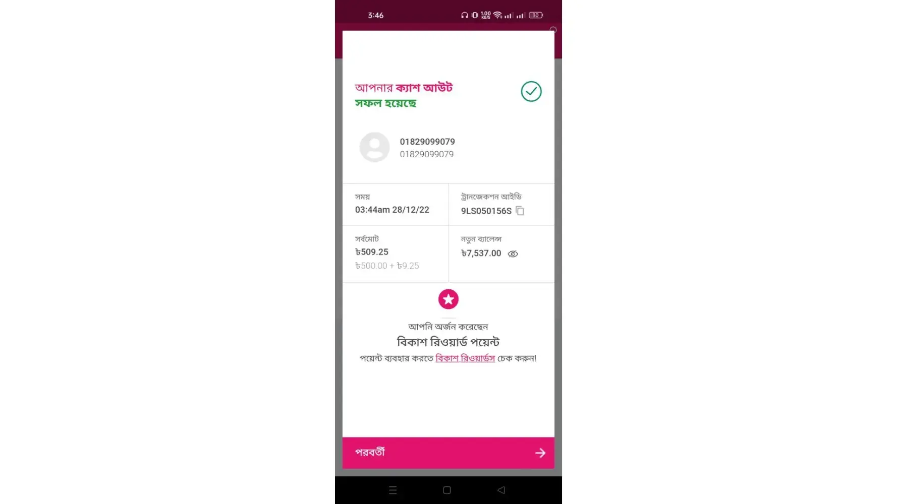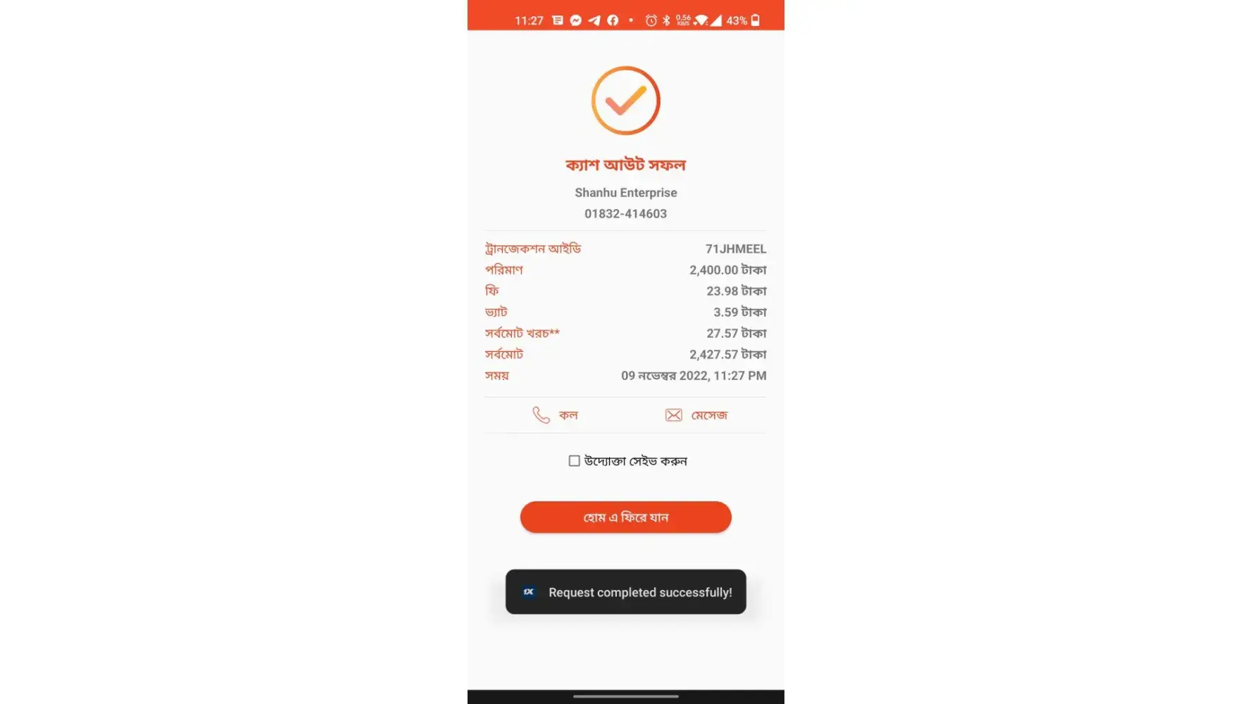 I was cashout 2400 BDT from [protected] to your Fast Nagad agent number [protected]