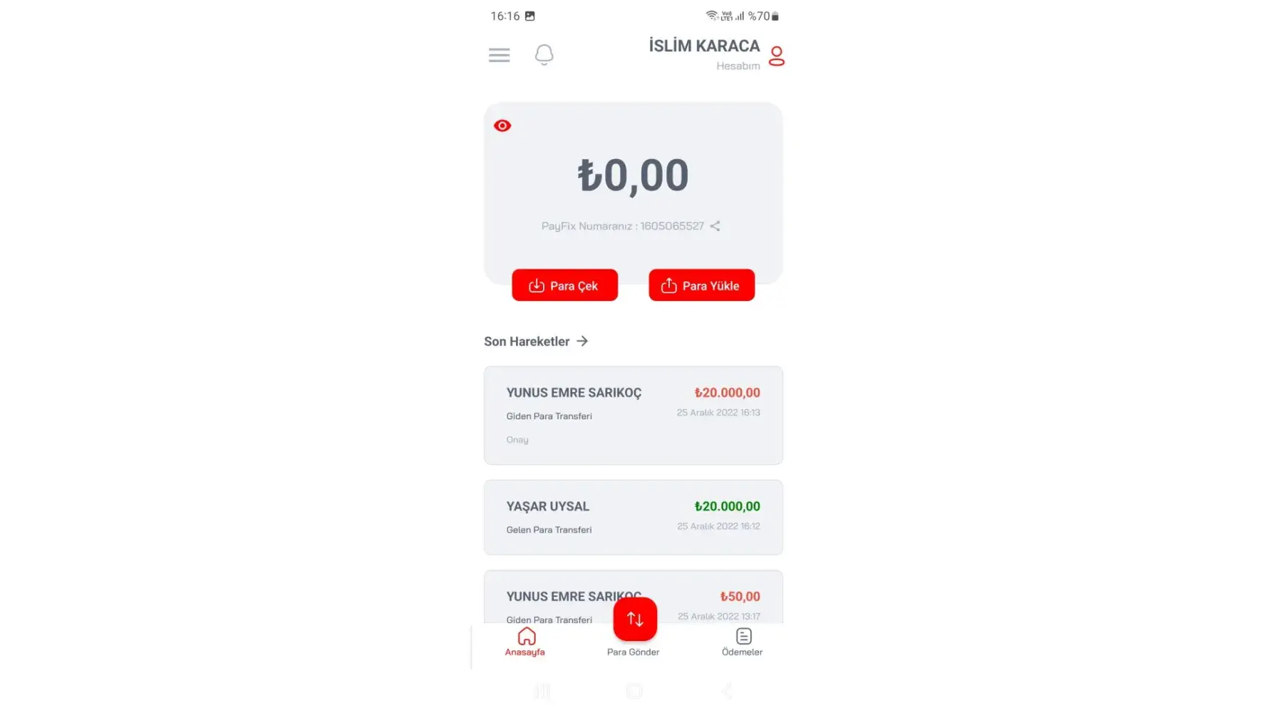 They don't give the money I deposited as if they blocked the account. If you think I gave it, the number you see in the photo sent money to the payfix account 4 times to open the account and asked for it back. After I blocked the account, I didn't receive any money from you...