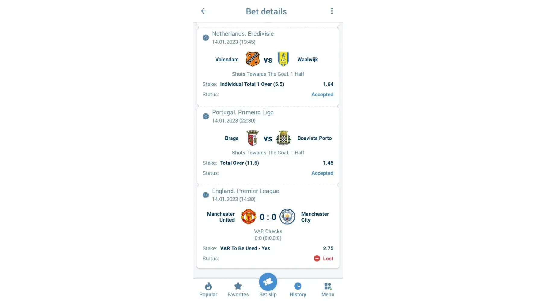 I bet on Var to be used more than 1 (over 1.5) in Barcelona vs Real Madrid Super cup final game. 2 incidents were checked by Var as long as I noticed (3rd Barcelona goal, offside check and Real madrid Goal, offside check) but It says on the bet page that the bet is lost.