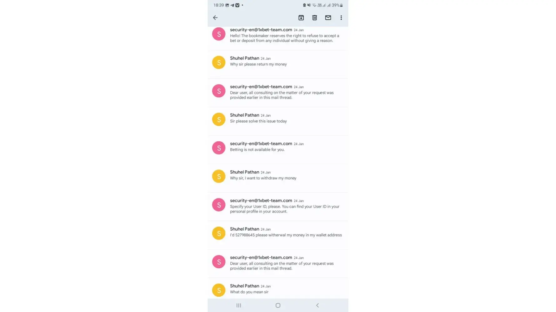 Et depuis je ne fais que envoyé des documents faire des appels Skype et jusqu'à présent aucune solution de la part du bookmaker