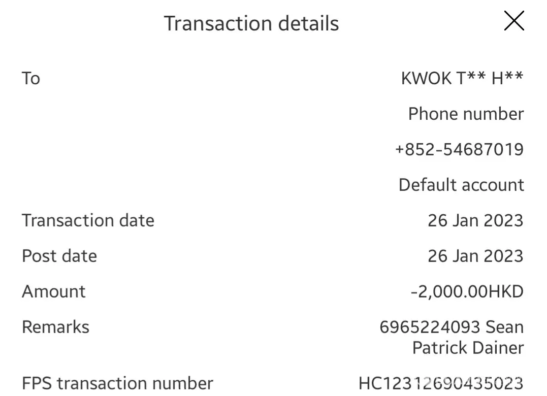 Amount: HKD2000