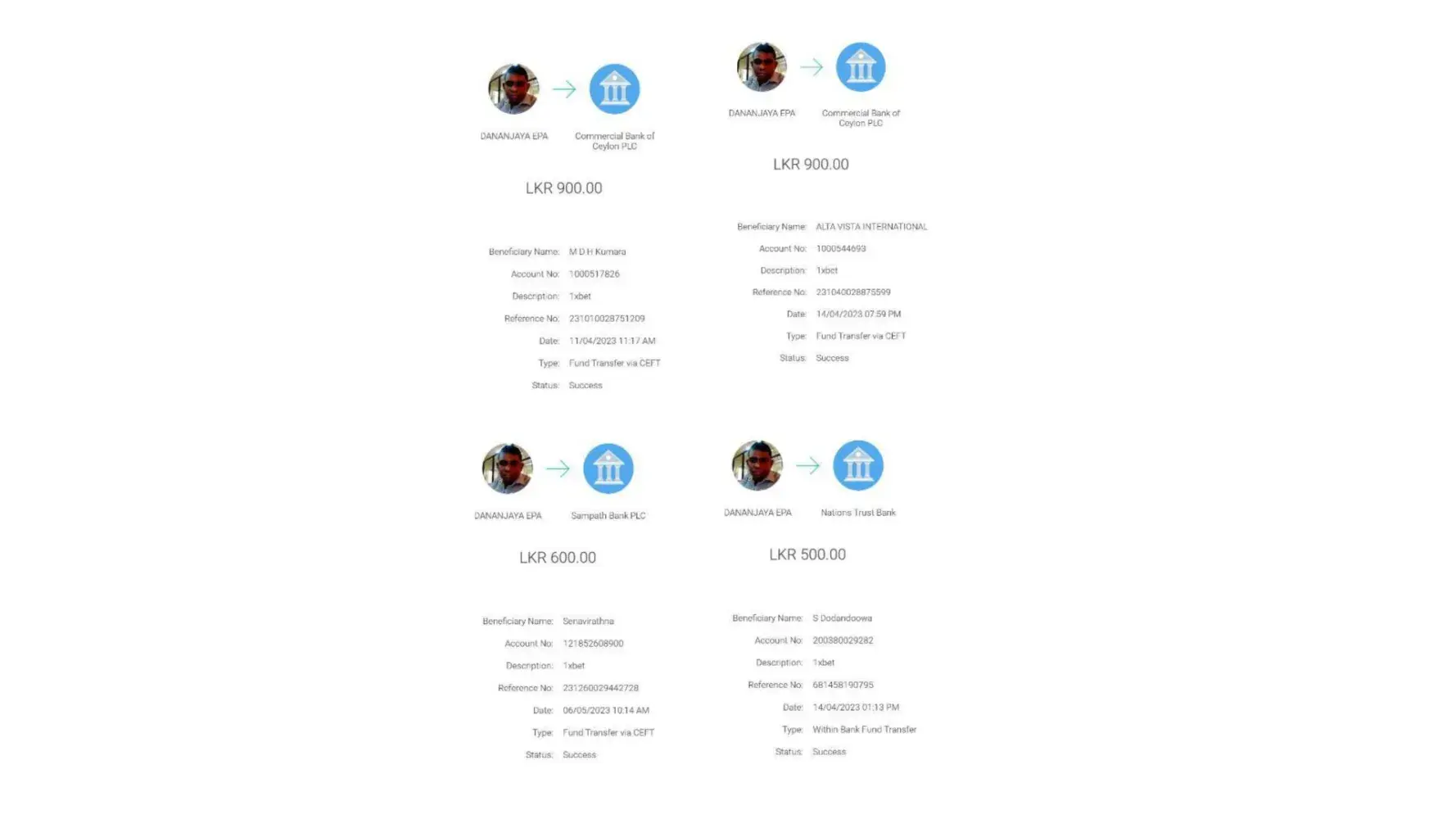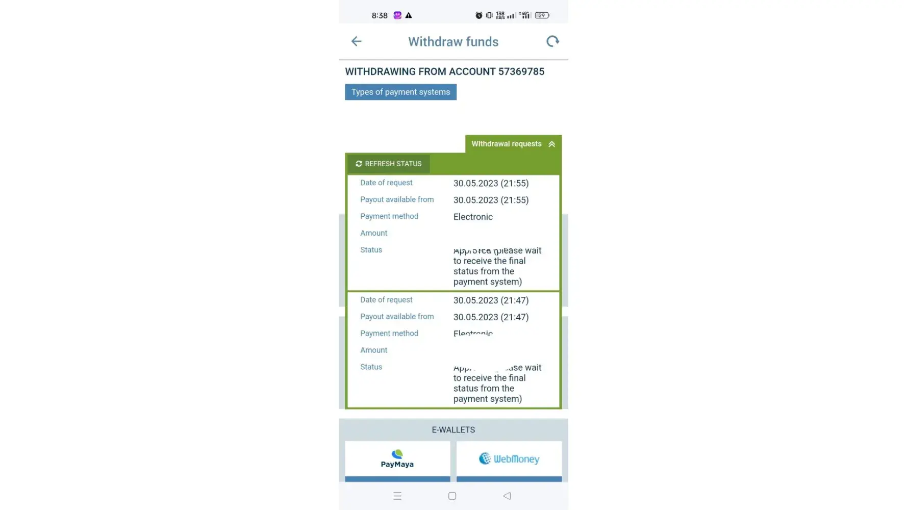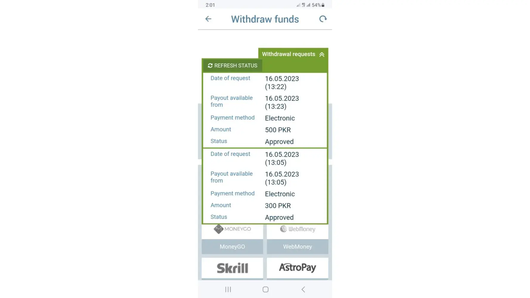 I withdraw 300 mony from 1xbet to my eassypysa acount and i have not recieved then i secound time withdraw 500 pkr thats also not recieved