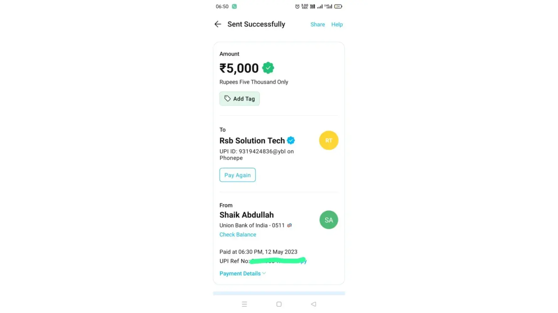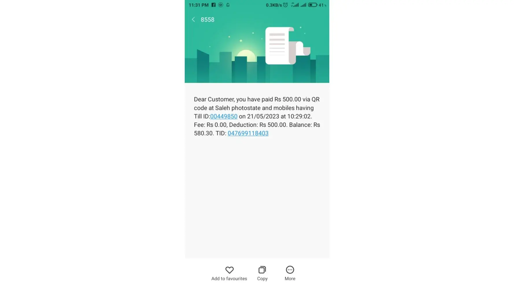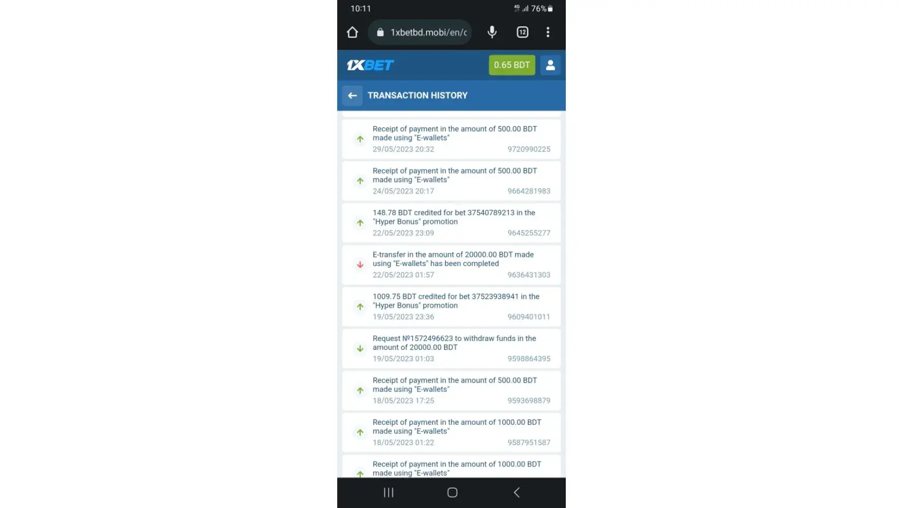 i share amount on Saleh Photostaten Jazz cash account on 21/05/2023 but still not showing on 1xbet account. and support center not brothering and waste my time so far please advice