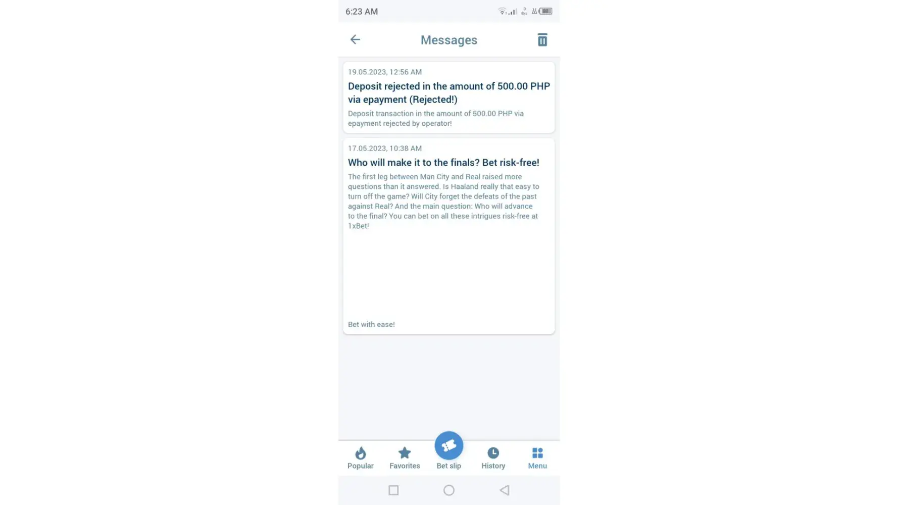 1xBet - I made two bets I cannot view it on my history n also the payment I made it’s not in the history 1