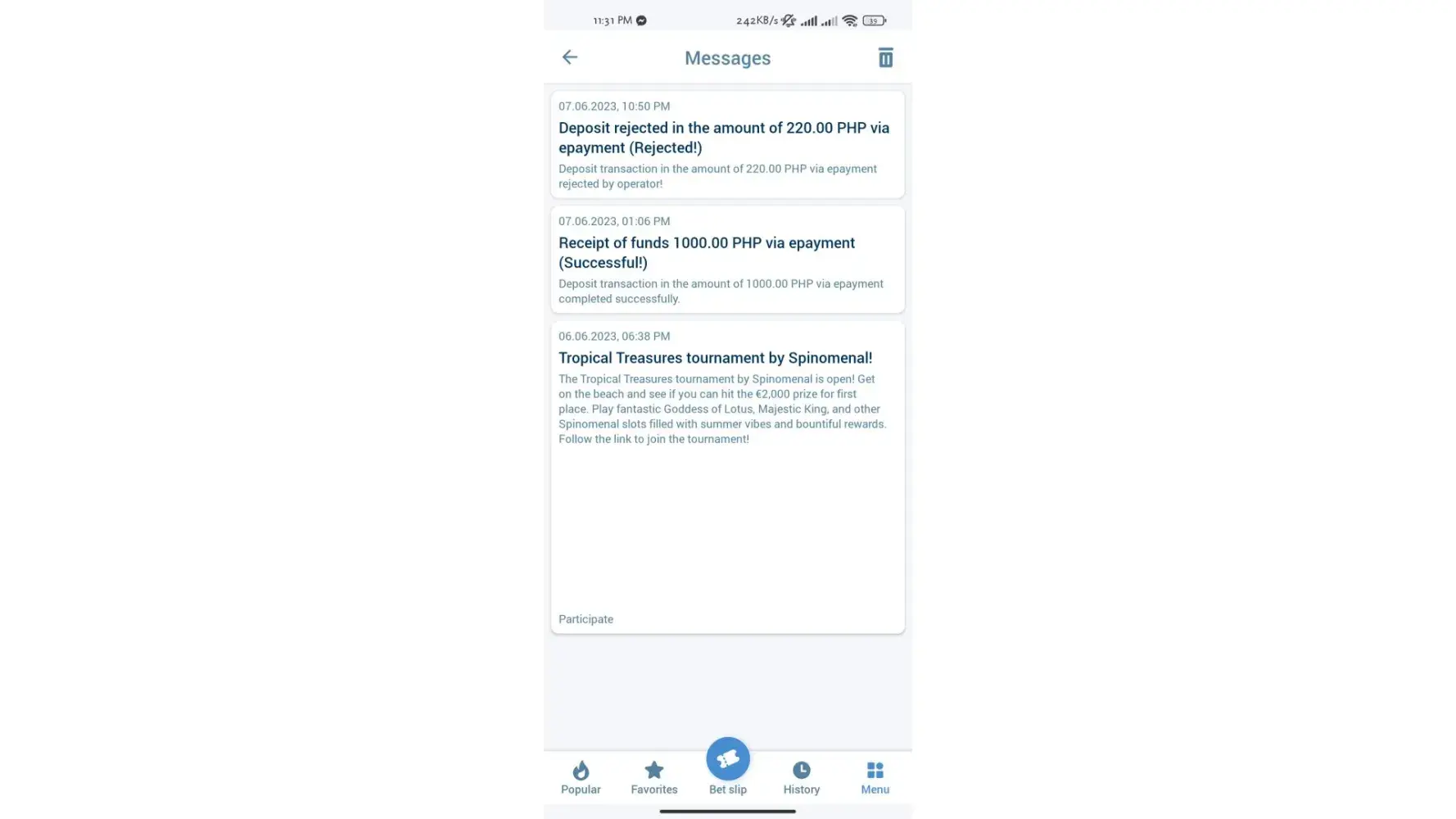 I deposited 200php into my 1xbet account using paymaya and it was rejected by the operator this happened 2x already and support is not answering my concerns.