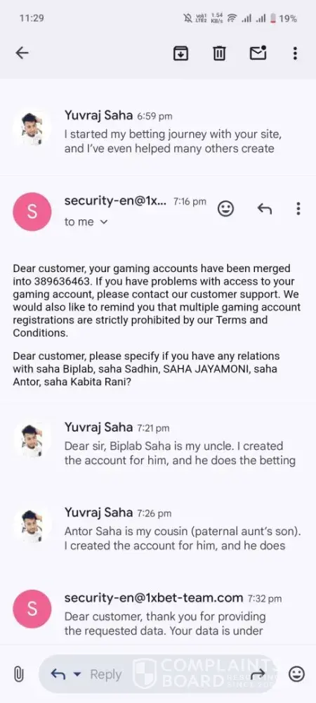 1xBet suspended my account without any warning or explanation. Despite multiple emails, they never gave the reason or proof. Now, to protect their public image, they are blaming the customer — yet if they have the courage, they should openly state which rule was violated. This is clear dishonesty.