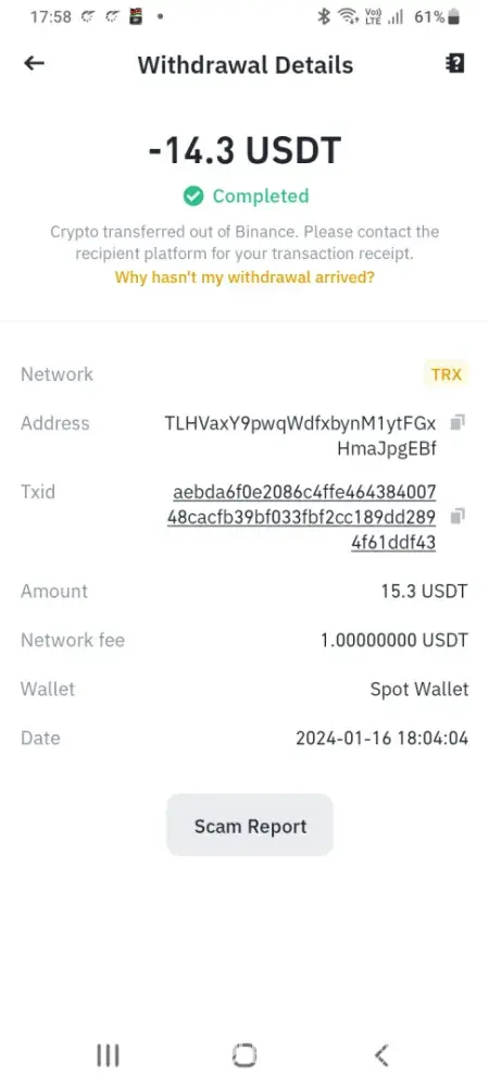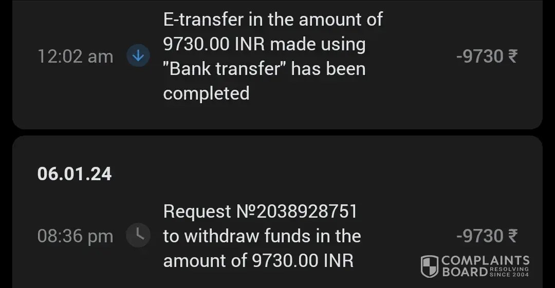 I've withdrawn ₹9730 indian rupees on 6 January 2023, on 7 January 12 am around I got notification that withdrawal is successful. But today is 19 January and i still haven't received money in my bank account yet.