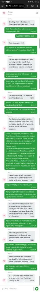 Also according to your TERMS AND CONDITIONS https://1xbet.com/en/information/rules/10 (10.8, subcategory: 4. Total Rounds"), it states "Total Roundsâ€. Customers need to predict the number of rounds in a bout. For bet settlement purposes, only rounds in which more than half the allocated time has elapsed count.