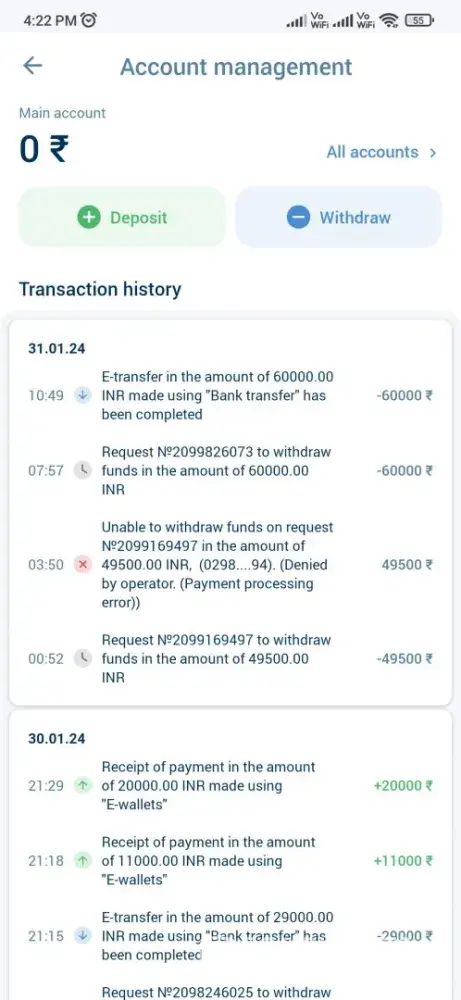 I made a withdrawal from 1xbet cash agent on 29 Jan 2024 but i still didn't recive my withdrawal amount in my wallet. I did mail to support and talked with operators but i have to face very rudely. I am attaching transaction id and cash agent id here.