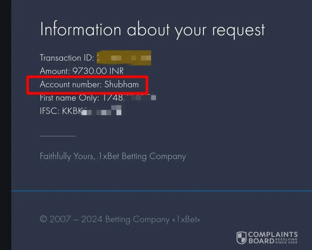 Although, its been a 19 days of scammed and 18 fays of complain i made there is no action against 1XBET CASH AGENT. My issue isnot updated and i didn't get justice. I am uninstalling this 1XBET application and request you all to do as same. With another complain i am going to public my cash agent details, Bank account numbers and Phone number here and others scammer sites. Be Aware Everyone, Thank You!