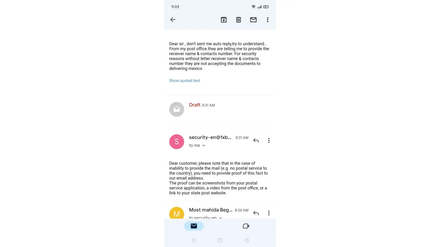 What's happening ? And emailed saying that