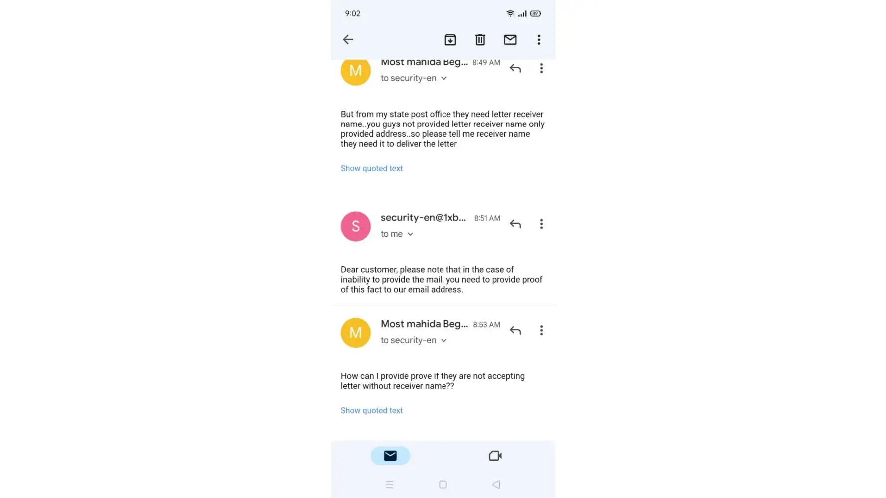 But nothing happened or get any email from security Department about progress of my account problem solution.