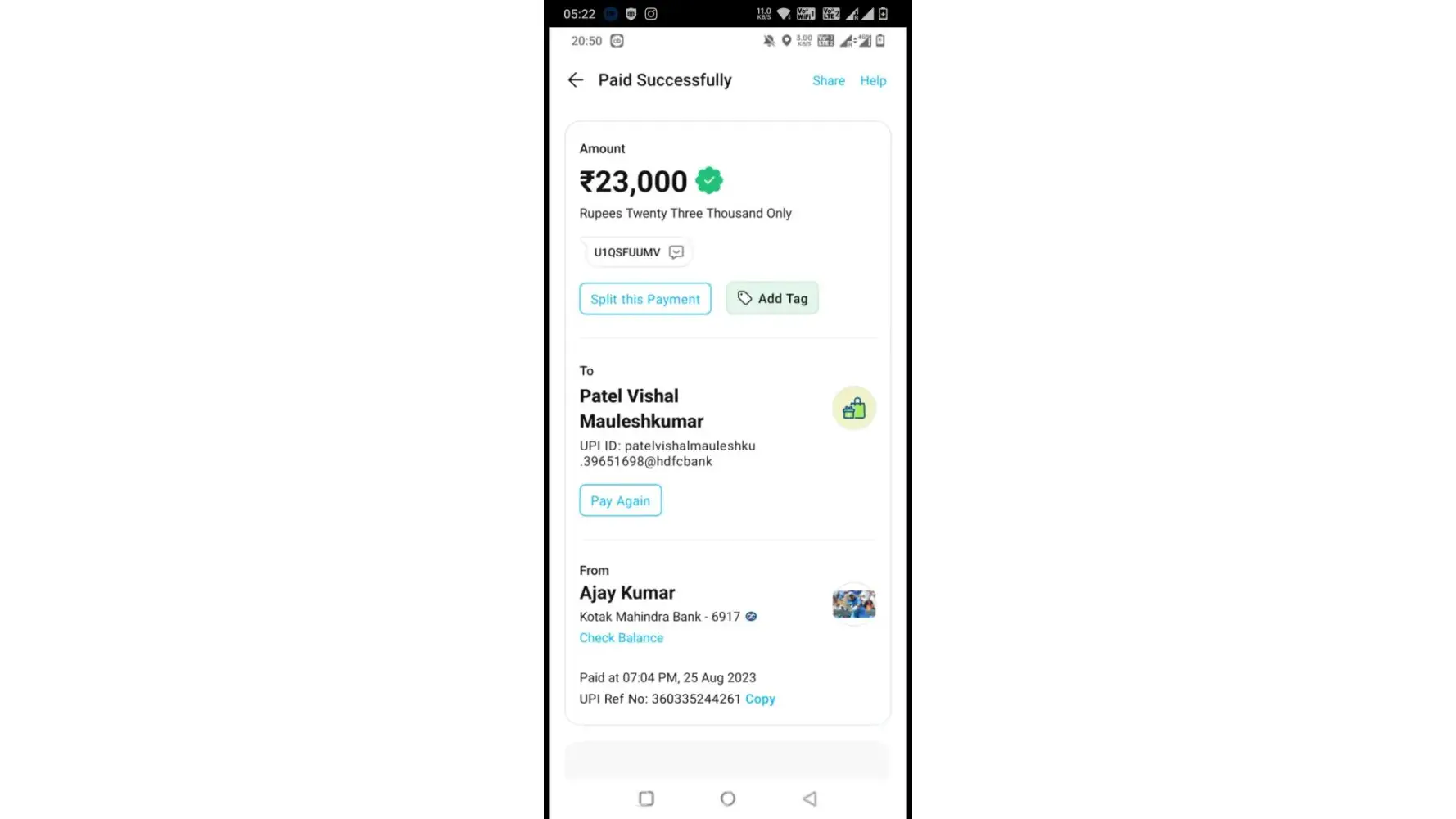 My UPI - [protected]@paytm