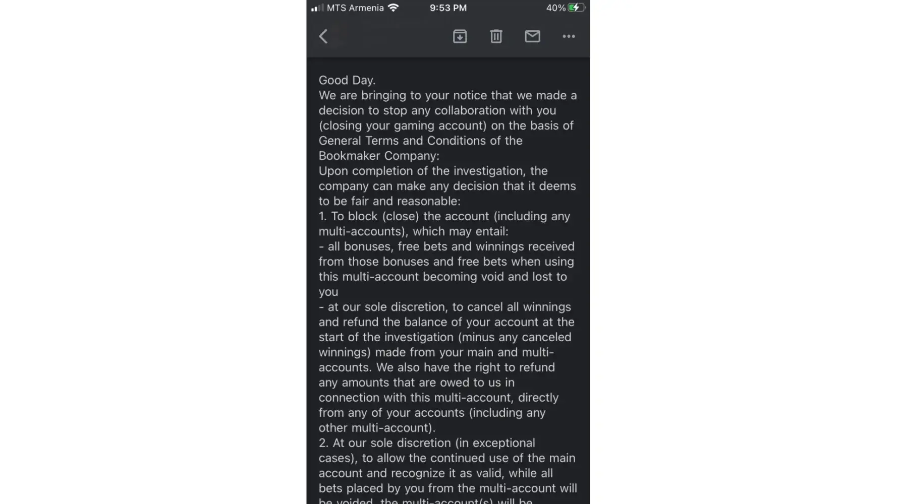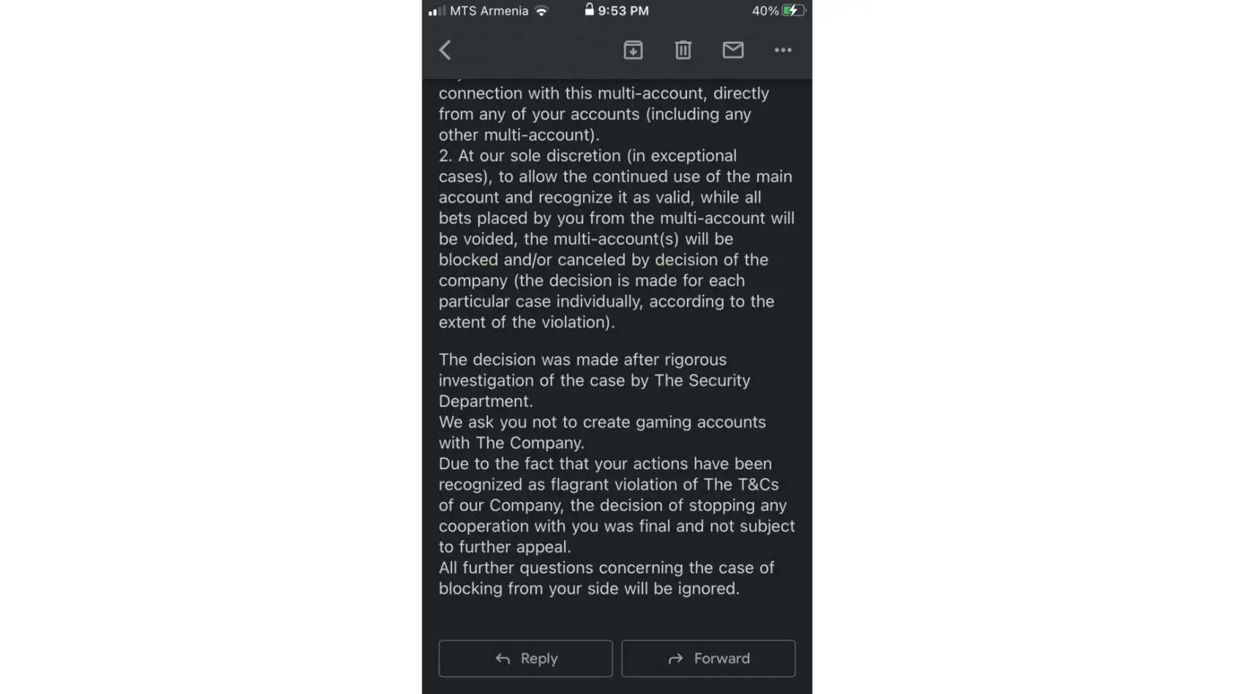 They blocked my account without any reason with just some template massage.