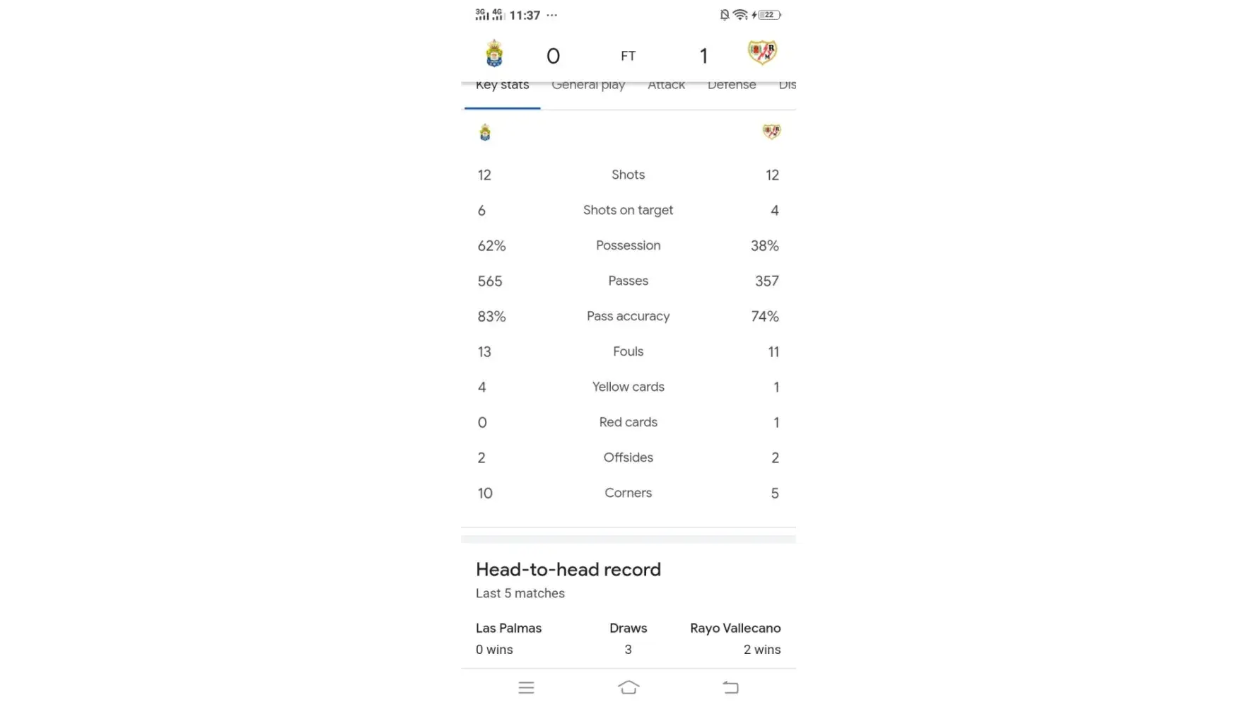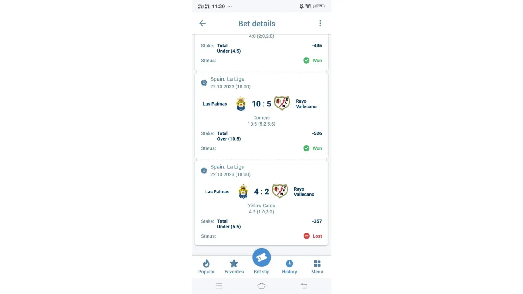 The result was mistake for yellowcard in las Palmas vs rayo volcano match.I have choosed under 5.5 yellow card in full time and it was 5 yellow card in full team.But in the app it is showing 6 yellow card.In Google and every other app it is showing that 5 yellow card and 1 red card happened.Please fix the lost and return back it to win.I have given the proof of it.