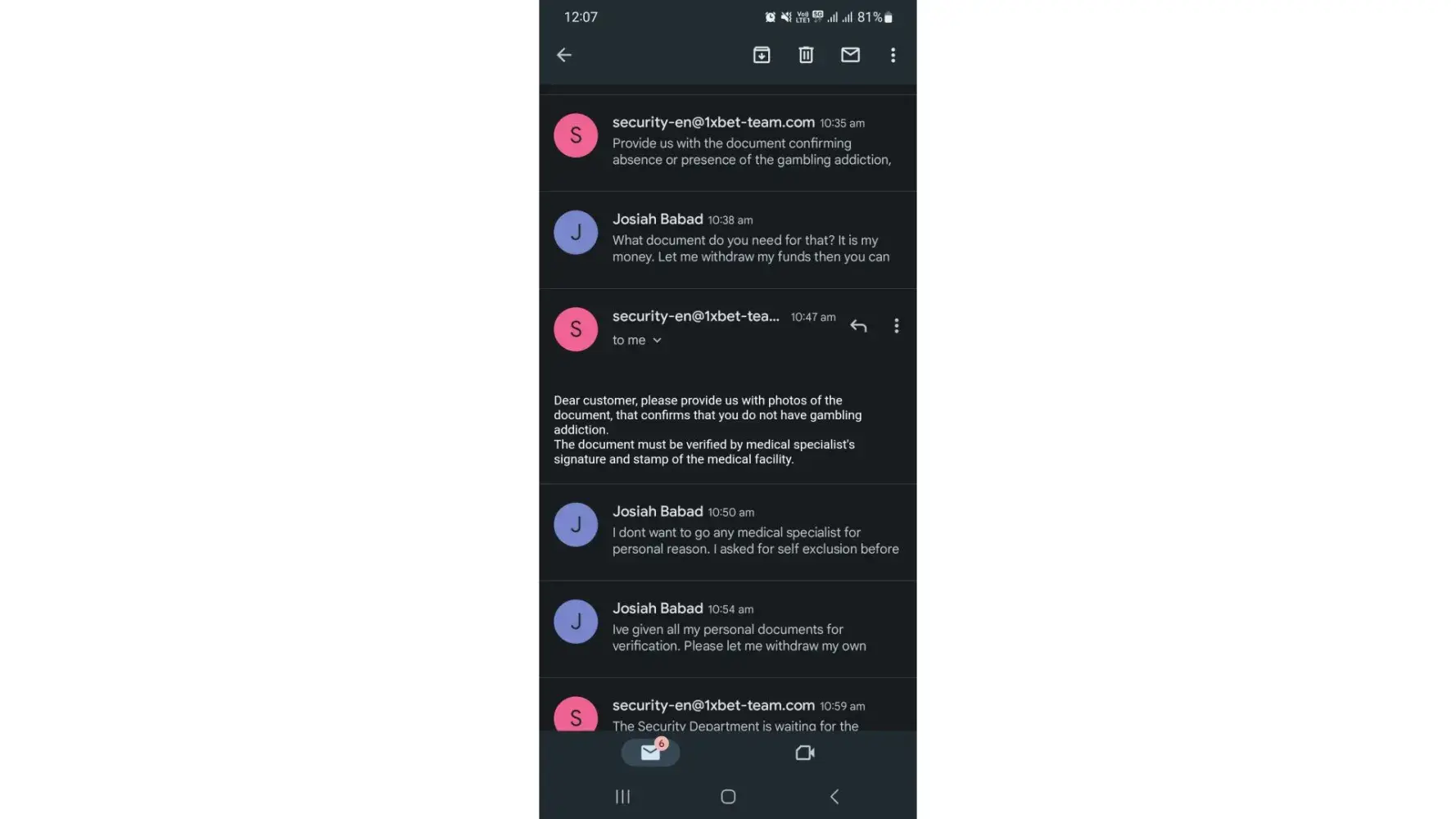 They asked me a certificate for gambling addiction and I refuse to go to a doctor just for me to withdraw my own money.