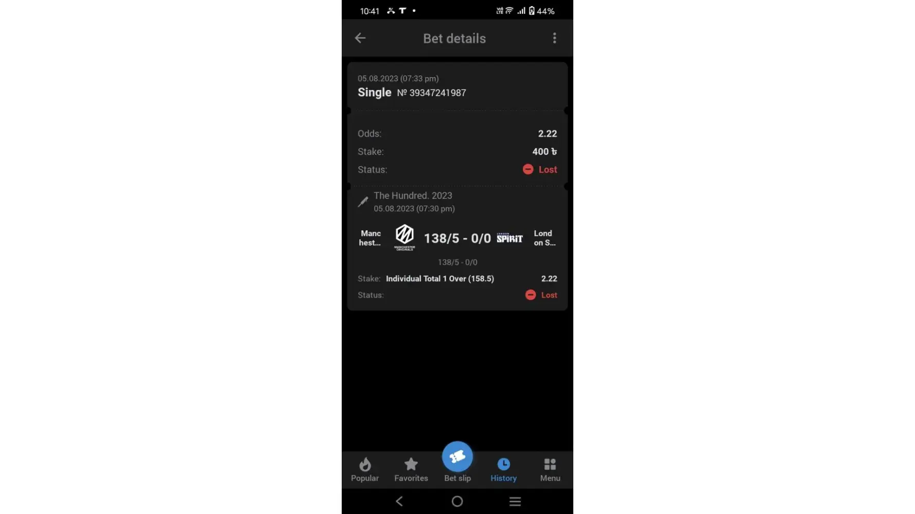 On Saturday 05 august 2023 at 07:30pm Bd local time I have made a stake to Manchester orginals vs London Sprit cricket match and decided to take team 1 total run over 158.5. That's was a 100 balls innings game but unfortunately it abandoned by rain. Before abandonment innings progress to 80 balls and get 138 runs.