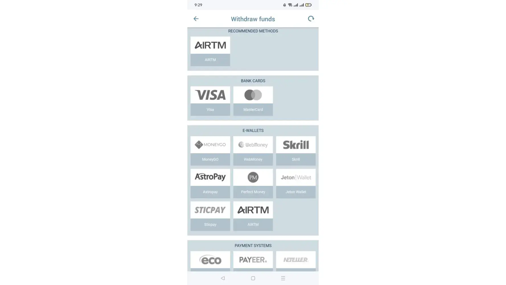 Desired outcome: Remove restrictions so that withdraw possible to the desired method