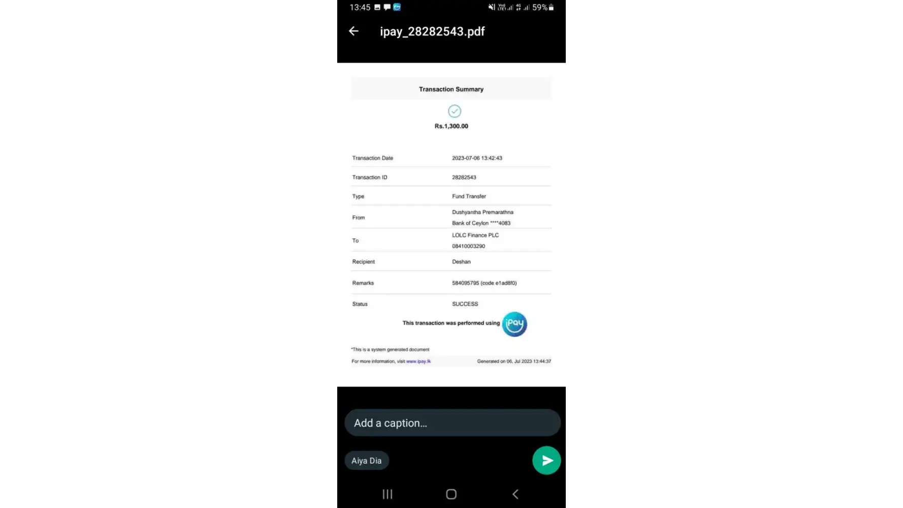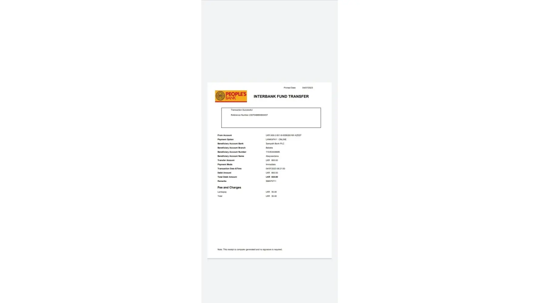 I m deposited 1300/= rupees and got the Reference number [protected]