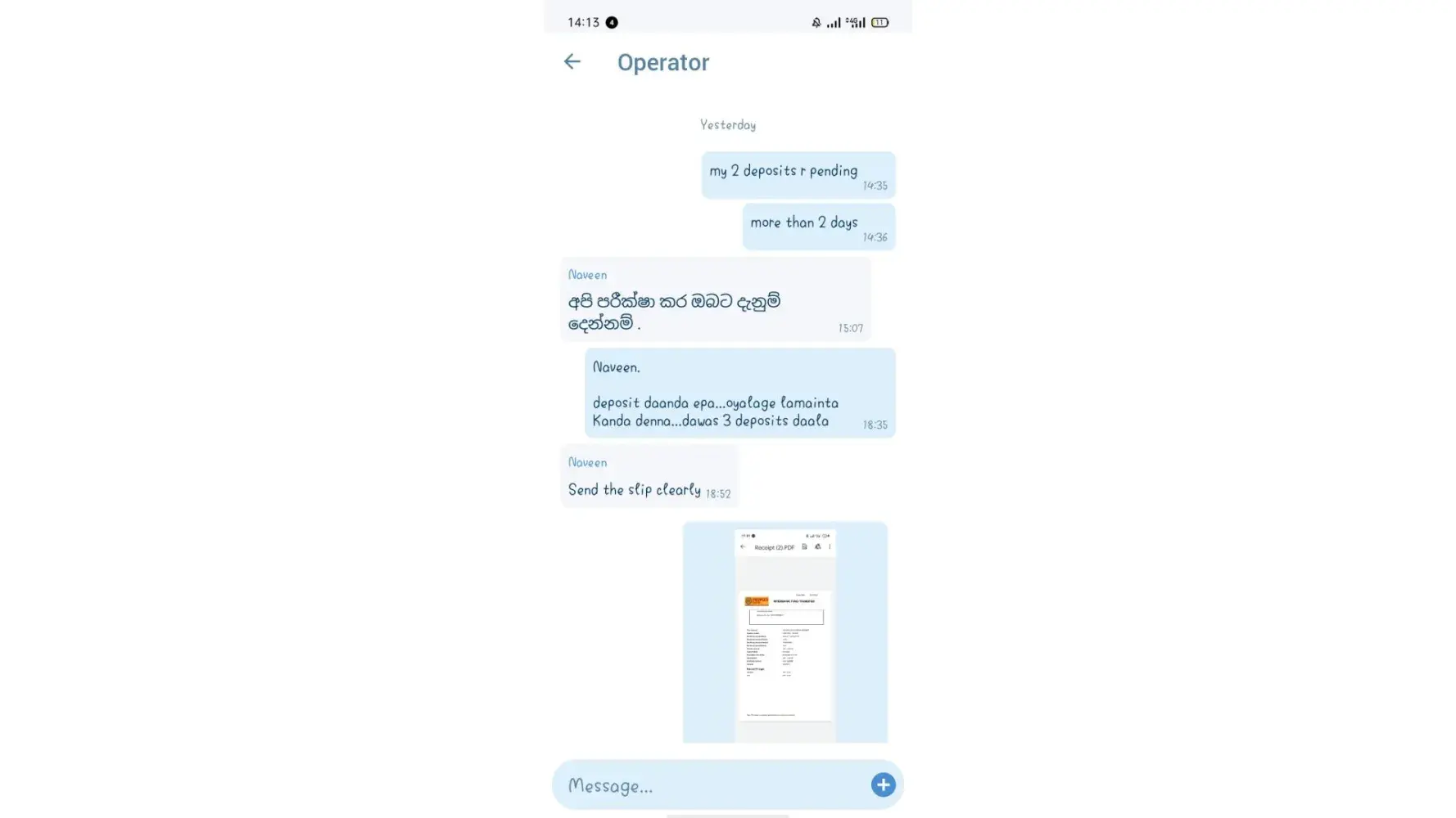 Sir i have diposit problem.13 days gone but they are Don't solve my problem .i was try to diposit by ipay 5000 RS.Diposit was successful but i didn’t get money yet In my 1x bet account. I was send messages as per 1x bet law. But they are Don't solve my problem yet. that's why I also was send it by email.